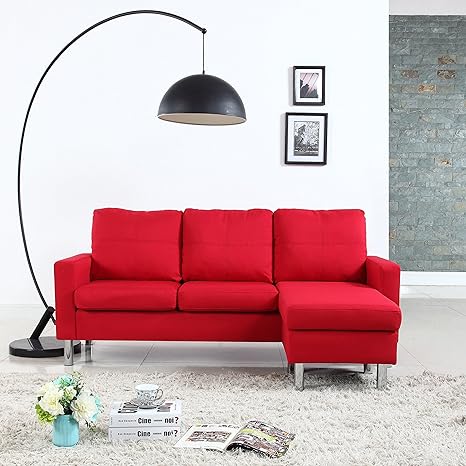 Modern Small Space Reversible Linen Fabric Sectional Sofa In Color Light Grey Dark Grey Beige Red Red