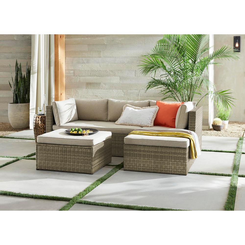 Valley Peak 3 Piece All Weather Gray Wicker Sectional Outdoor Patio Set With Beige Cushions