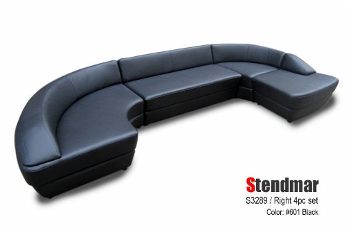 4pc Modern Black Leather Sectional Sofa Set S3289