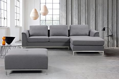 Amazon Com 3 Piece Modern Grey Sectional Sofa With Ottoman