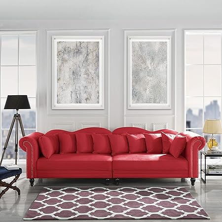Classic Velvet Chesterfield Scroll Arm Large Living Room Sofa Red