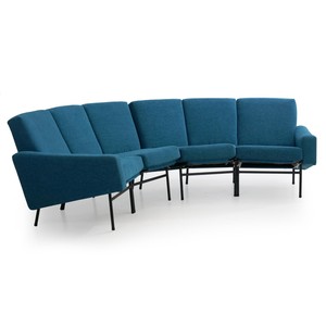 Details About Pierre Guariche Sofa Two Part Blue Vintage Model L 10 Curved Settee C 1960s