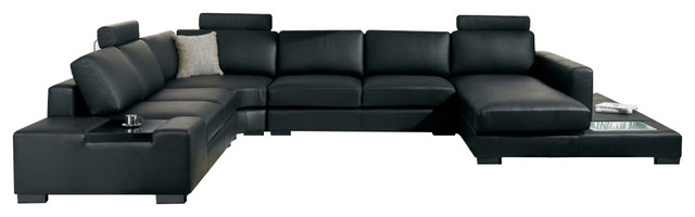 Modern Black Leather Sectional Sofa With Seaters Chaise Corner