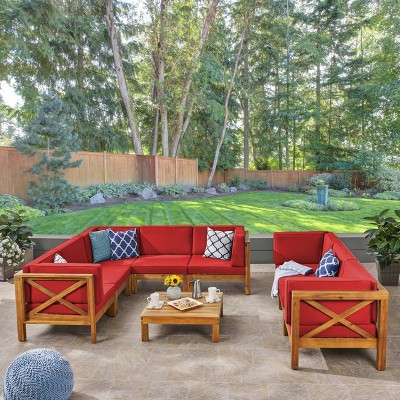 Brava 9pc Acacia Sectional Sofa Table Set Teak Red