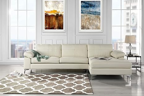Leather Sectional Sofa L Shape Couch With Chaise Right Chaise Ivory
