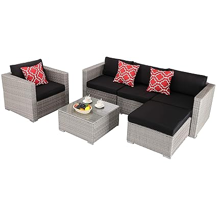 Outsunny 6 piece outdoor patio sectional sofa furniture set l shape corner wicker rattan wedge fan shape table with cushions. Videos for this product. Devoko 5 pieces patio furniture sets all weather outdoor sectional sofa manual weaving wicker rattan patio conversation set with cushion and glass table bright red pillow.
