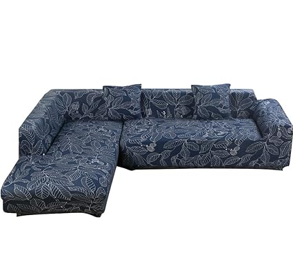 Beacon Pet L Shape Sofa Covers Sectional Sofa Cover 2pcs Polyester Fabric Stretch Slipcovers 2pcs Pillow Covers For L Shape Couch Blue Leaves