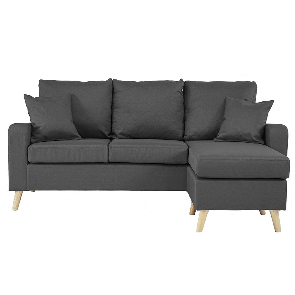 Divano Roma Furniture Mid Century Modern Linen Fabric Small Space Sectional Sofa With Reversible Chaise Dark Grey