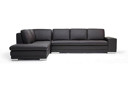 Cortesi Home Contemporary Boston Genuine Leather Sectional Sofa With Left Chaise Lounge Black