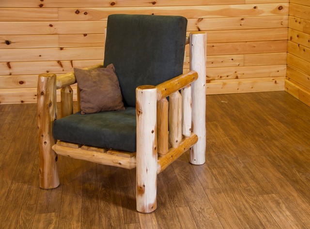 Rustic White Cedar Log Living Room Armchair Hunter Green Microfiber Amish Made