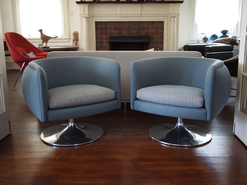 2 Available Knoll Joseph D Urso Swivel Pod Chair Tulip Lounge Arm Club Armchair Slate Blue Gray Grey Mid Century Modern Danish Eames Era