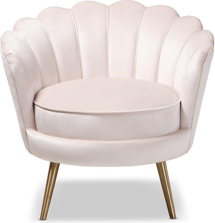 Baxton Studio Cosette Glam And Luxe Light Beige Velvet Fabric Upholstered Brushed Gold Finished Seashell Shaped Accent Chair