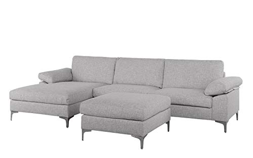 Large 108 2 Inch Sectional Sofa With Ottoman L Shape Couch With Chaise Light Grey