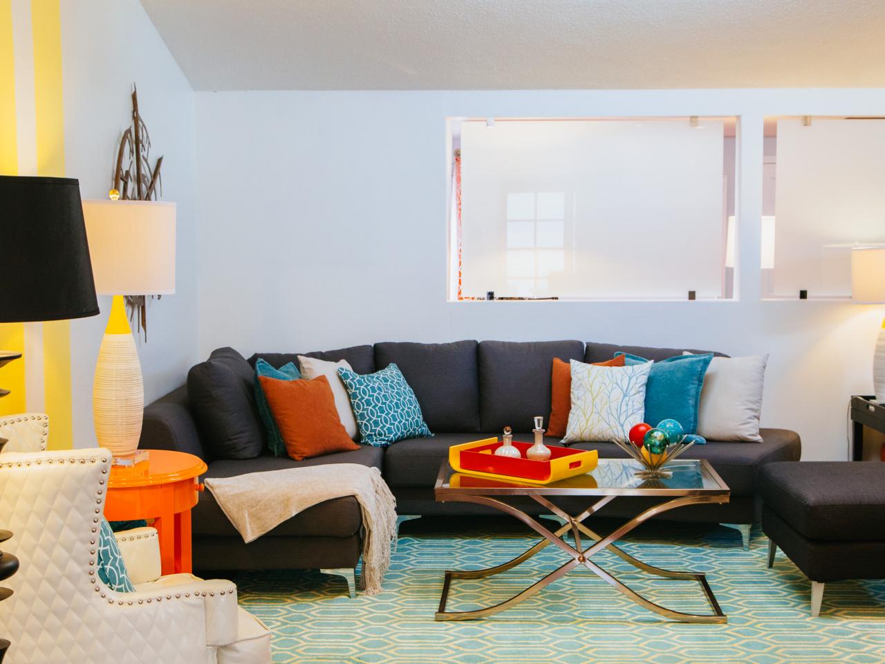 Contemporary Living Room With Gray Sectional And Bright