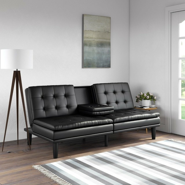 Memory Foam Sofa Bed Couch Convertible Futon Leather Cup Holder Pillow Top