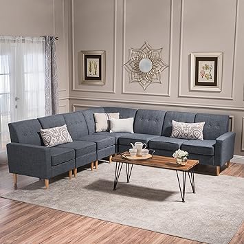 Details About Samuel Mid Century Modern 7 Piece Fabric Sectional Sofa Set