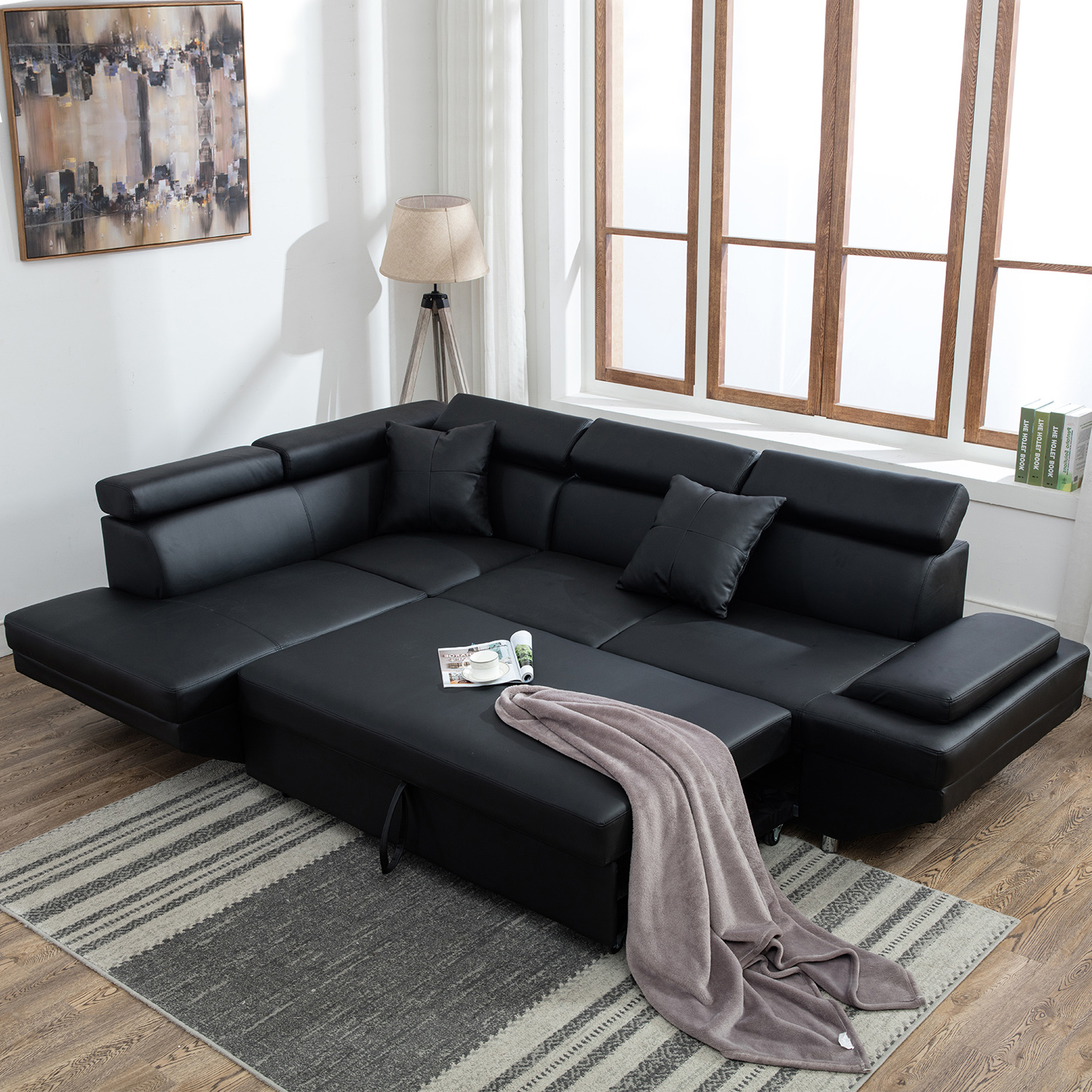 Contemporary Sectional Modern Sofa Bed Black With