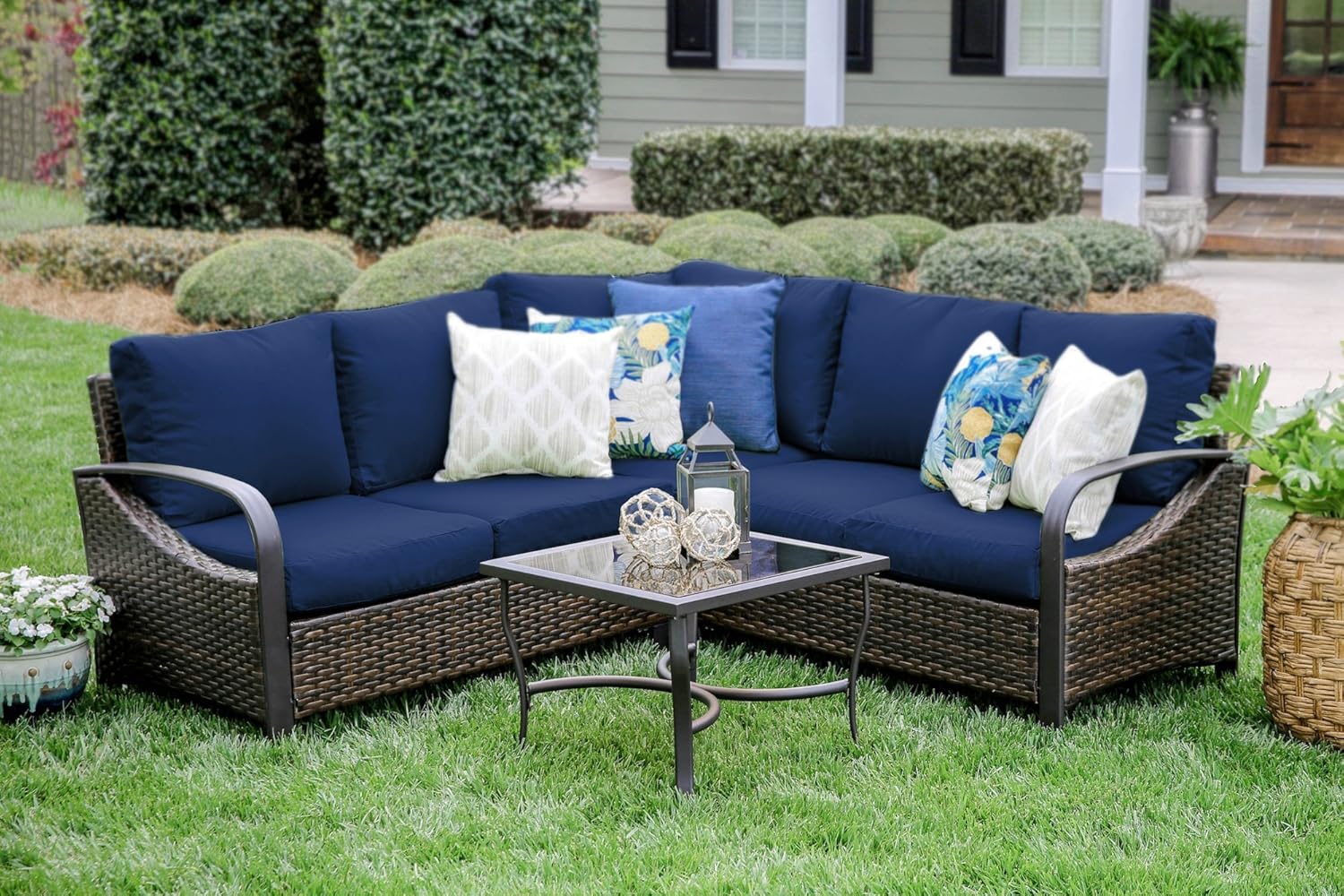 Leisure Made Trenton 4 Piece Outdoor Sectional Navy Fabric
