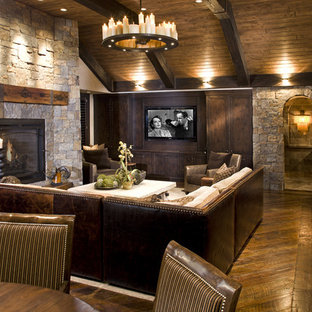 Rustic Leather Sectional Sofa With Tables And Carpets
