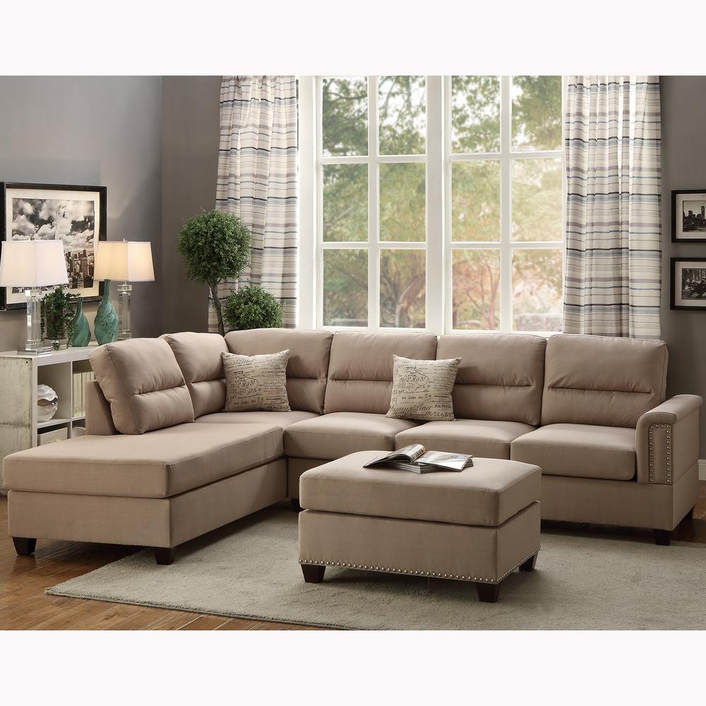 Poundex Bobkona Winden Blended Linen 3 Piece Reversible Sectional Sofa With Ottoman Tan