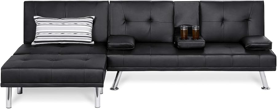 Best Choice Products Faux Leather Upholstery 3 Piece Modular Modern Living Room Sofa Sectional Furniture Set W Convertible Double Futon Bed