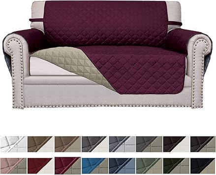 Easy Going Sofa Slipcover Reversible Sofa Cover Furniture Protector Couch Cover Elastic Straps Pets Kids Children Dog Cat Loveseat Wine Beige