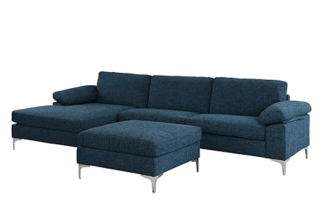 Large 108 2 Inch Sectional Sofa With Ottoman L Shape Couch With Chaise Dark Blue