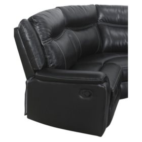 3 Piece Black Color Faux Leather Right Facing Sectional Sofa Set With