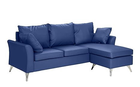Casa Andrea Milano Modern Pu Leather Sectional Sofa Small Space Configurable Couch Blue