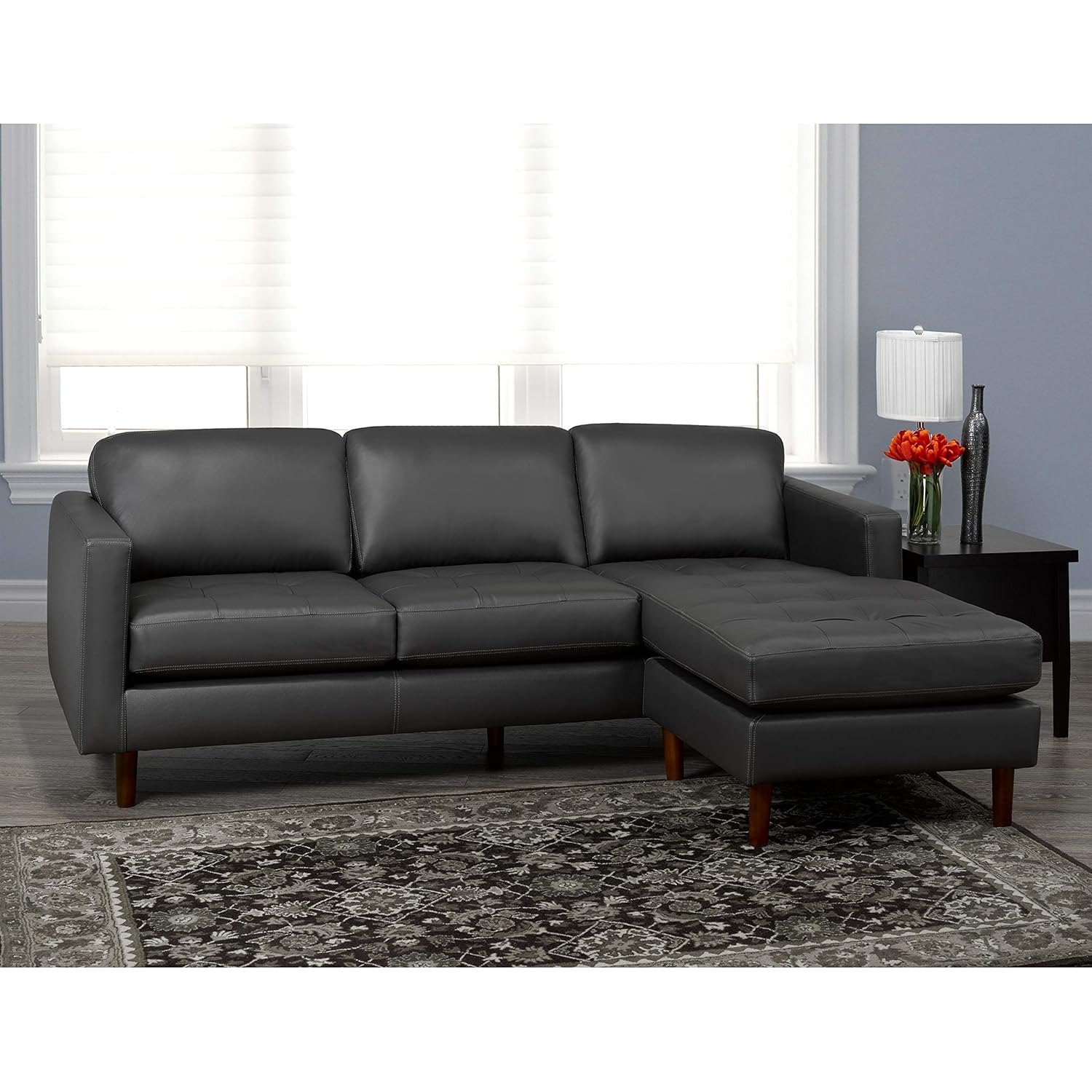 Preston Sectional Sofa In Dark Gray Leather By Whiteline