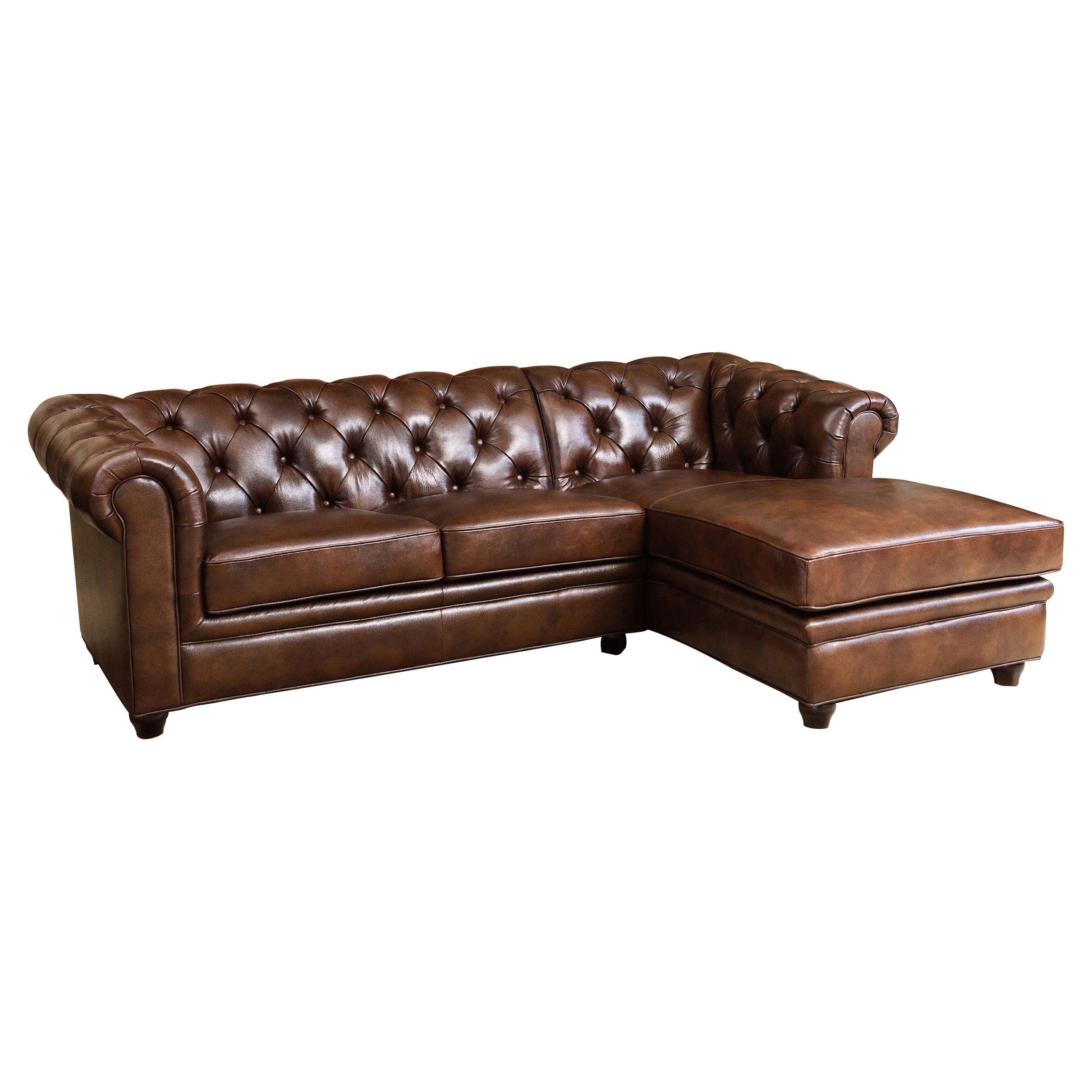 Abbyson Tuscan Tufted Top Grain Leather Chaise Sectional