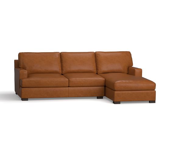 Townsend Square Arm Leather Chaise Sofa Sectional