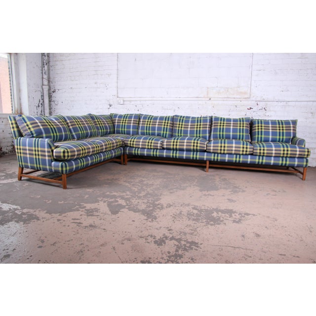 A Rudin Down Filled Two Piece Sectional Sofa In Plaid Upholstery