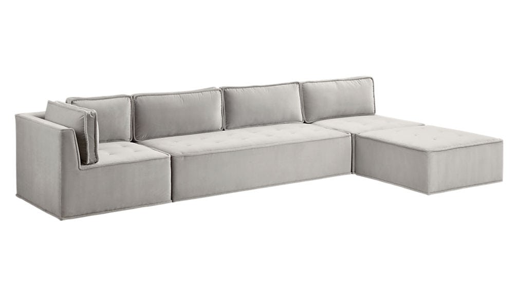 Quattro Sharkskin Light Grey Velvet Tufted 4 Piece Sectional Sofa