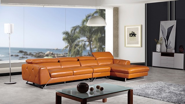 3pc Modern Orange Italian Full Top Grain Leather Sectional Sofa Chaise Chair Set