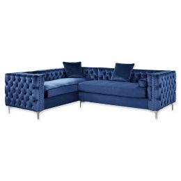 Lorenzo Navy Blue Chaise Sectional Sofa 115 Left Facing Velvet Tufted Storage Metal Legs Inspired Home