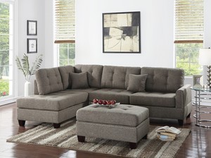 Poundex F6581 3 Pc Latitude Run Dracaena Martinique Grey Linen Like Fabric Sectional Sofa With Reversible Chaise And Ottoman