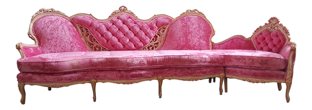 Vintage French Provincial Pink Velvet Sectional Hollywood Regency Velvet Pink Couch Modern Pink Sofa