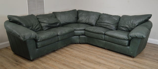 Italian Made Green Leather Sectional Sofa
