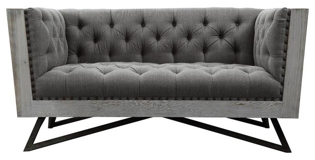 Regis Contemporary Loveseat Gray Fabric With Black Metal Finish Legs