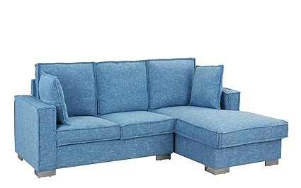 Classic Linen Fabric Sectional Sofa Small Space L Shape Couch With Chaise Light Blue