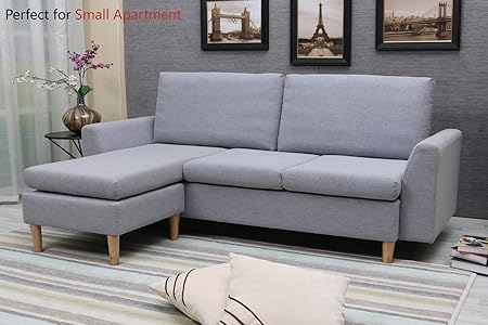 Sectional Sofa L Shape Sectional Couch With Reversible Chaise Couches And Sofas With Modern Linen Fabric For Small Space Grey Blue