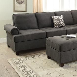 He 9879gy 2pc 2 Pc Bonita Gray Fabric Sectional Sofa Set Rounded Chaise
