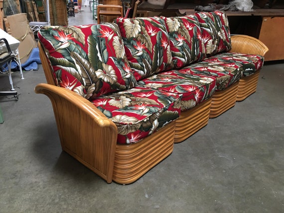 Art Deco Style Rattan Fan Arm Four Seat Sectional Sofa