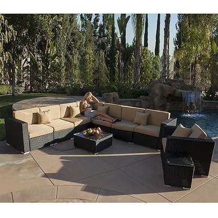 Belleze 10pc Outdoor Patio Furniture Set Black Pe Wicker Rattan Couch Sofa Table Aluminum Frame