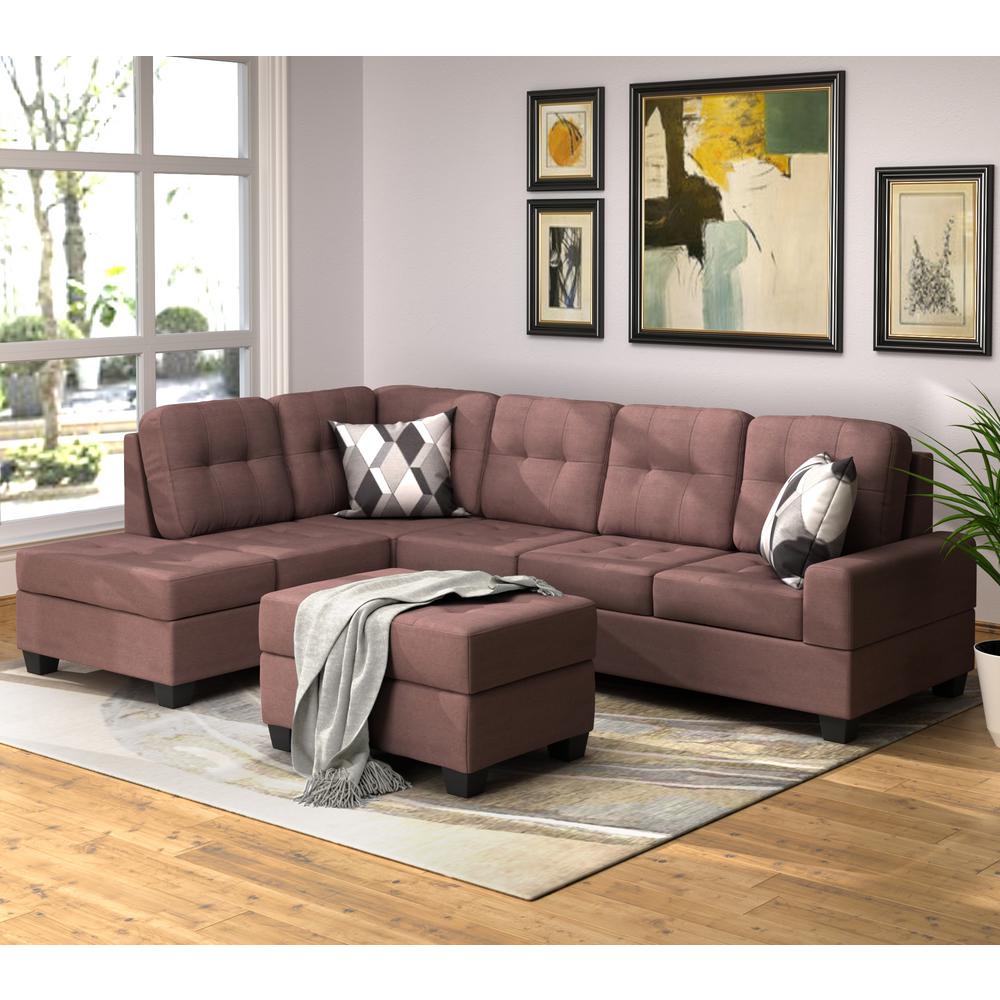Merax Sectional Sofa With Chaise And Ottoman 3 Piece Sofa For Living Room Furniture Gray
