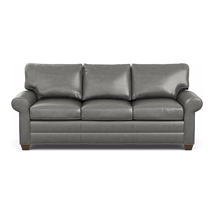 Ethan Allen Bennett Roll Arm Leather Sofa 86 Sofa Omni Charcoal Top Grain Leather