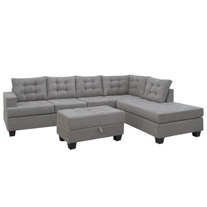 Details About Living Room Sectional Sofa Set W Chaise Lounge And Ottoman 3 Piece Medium Gray