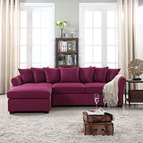 Divano Roma Furniture Modern Large Linen Fabric Sectional Sofa L Shape Couch With Extra Wide Chaise Lounge Purple