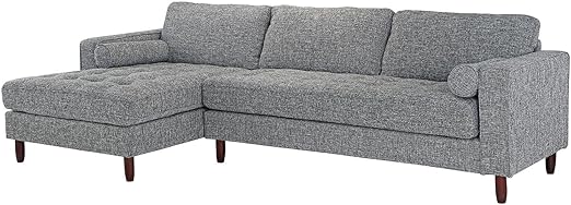 Mid Century Modern Tufted Fabric Sectional Sofa L Shape Couch With Extra Wide Chaise Lounge
